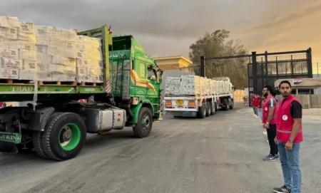 وفي سياق متصل، بدأت، صباح اليوم، الشاحنات المحمّلة بالمساعدات الإنسانية بالتحرّك من معبر رفح من الجانب المصري باتجاه قطاع غزة.